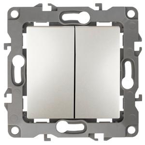12-1104-15 ЭРА Выключатель двойной, 10АХ-250В, Эра12, перламутр