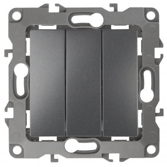 12-1107-12 ЭРА Выключатель тройной, 10АХ-250В, Эра12, графит