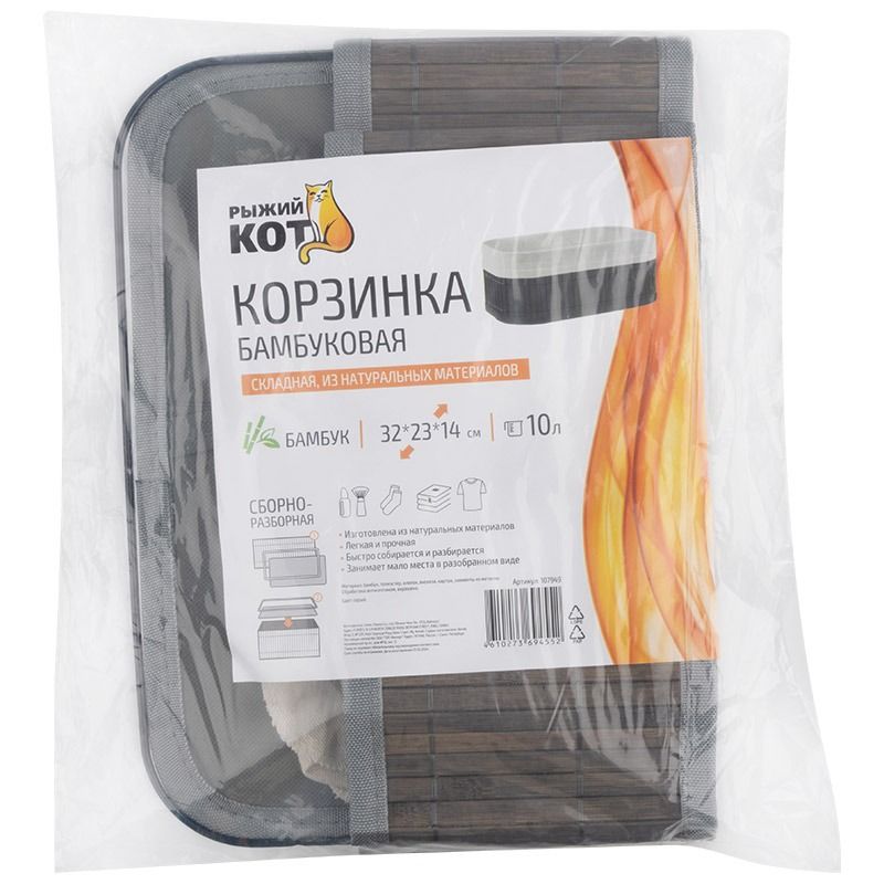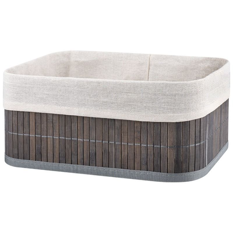 Бамбуковая корзинка складная (каркас: стальной прут), р-р 32*23*14, серая