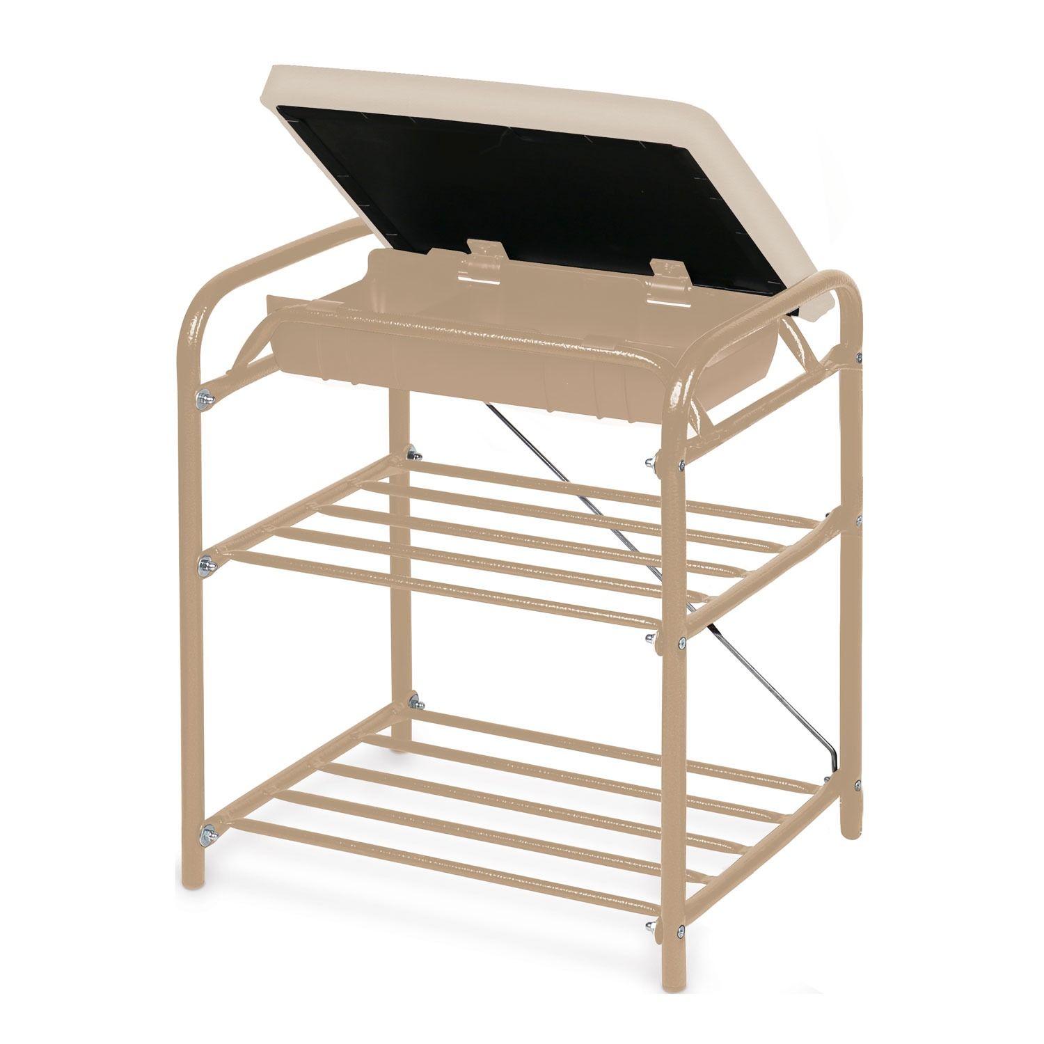 Банкетка с мягким сиденьем и ящиком (БП1-1/БЖ слоновая кость/бежевый металлик)