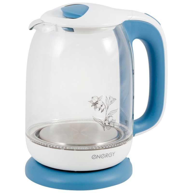 Чайник ENERGY E-281 (1.7л) стекло, пластик, бело-голубой