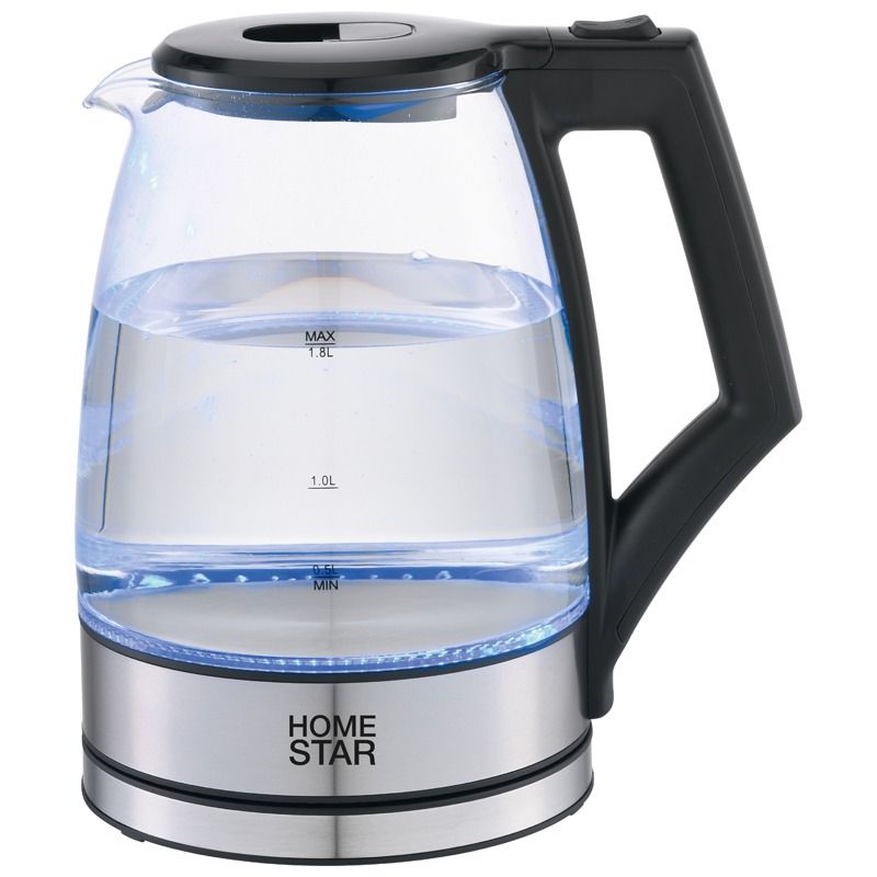 Чайник HomeStar HS-1004 (1,8 л), стекло, пластик, черный