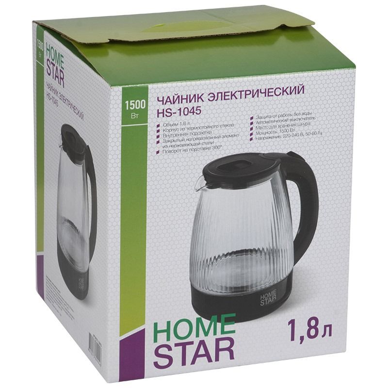Чайник HomeStar HS-1045 (1,8 л) стекло, пластик, черный
