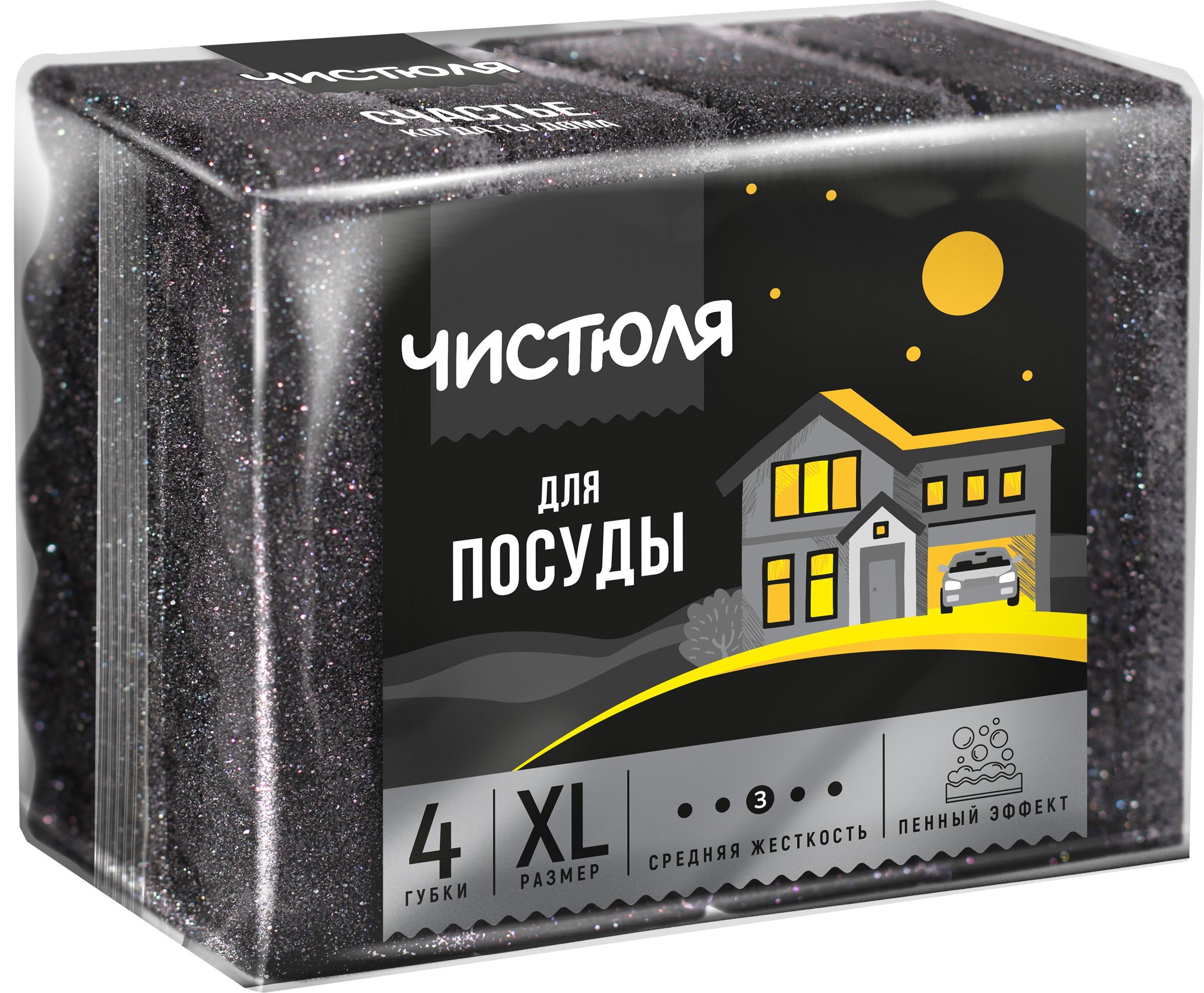 ЧИСТЮЛЯ 4XL ПЕННЫЙ ЭФФЕКТ губки для посуды ЧЕРНЫЕ размер XL 4шт