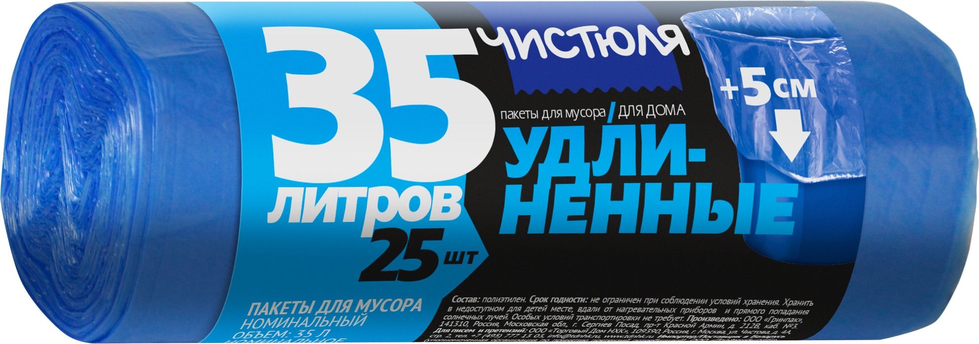 ЧИСТЮЛЯ пакеты для мусора ДЛЯ ДОМА удлиненные 35л 25шт