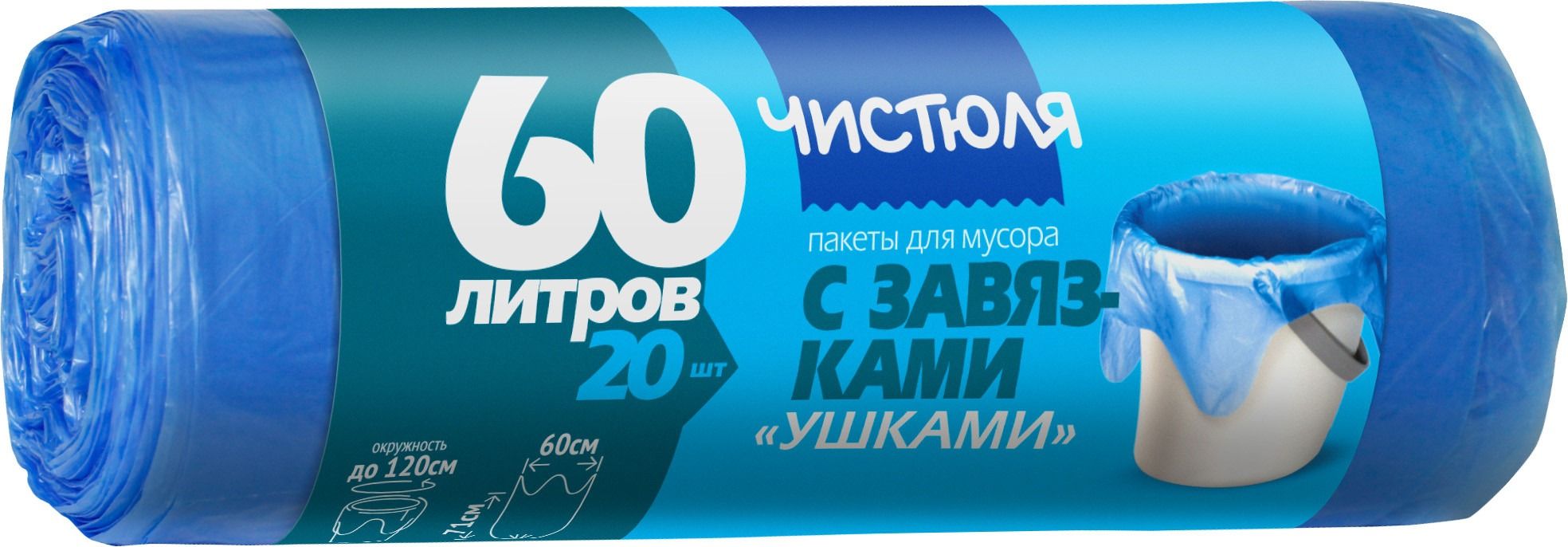 ЧИСТЮЛЯ пакеты для мусора с завязками-ушками 60л 20шт