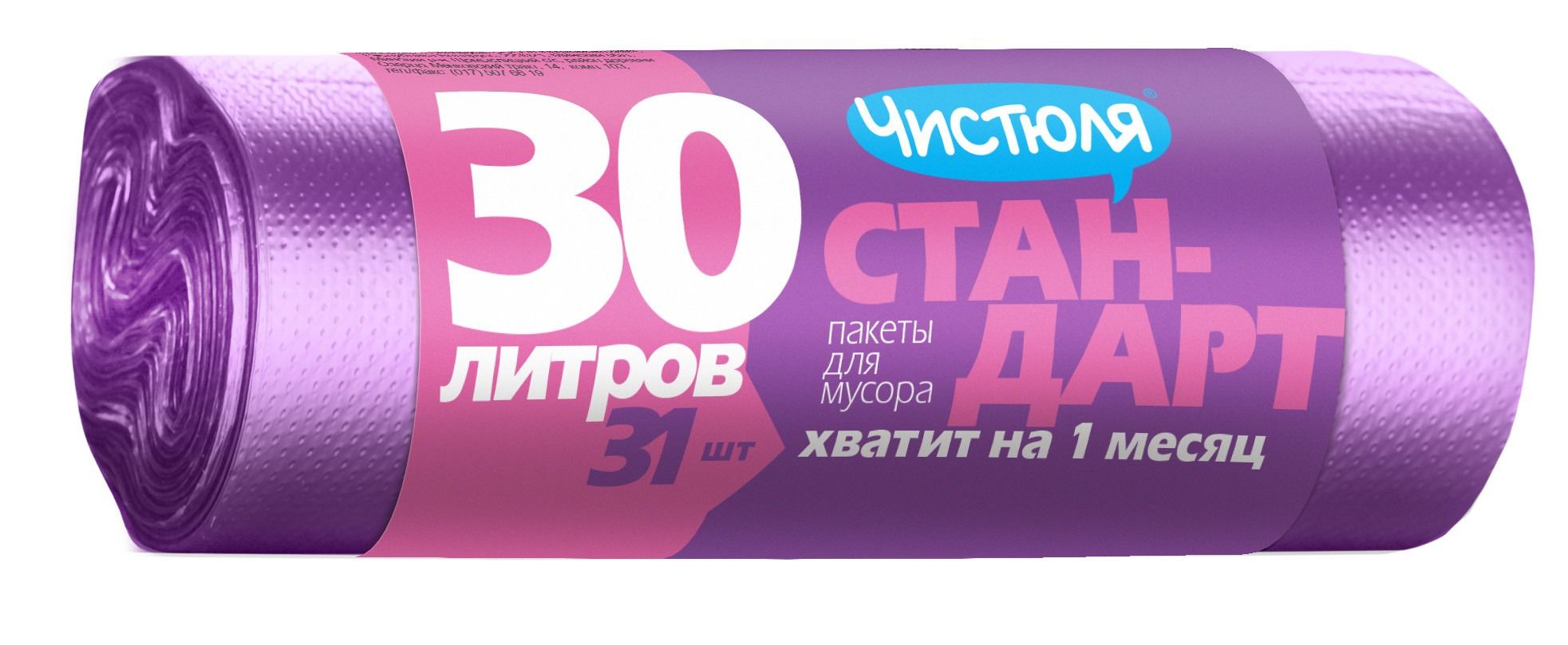 ЧИСТЮЛЯ пакеты для мусора СТАНДАРТ 30л 31шт