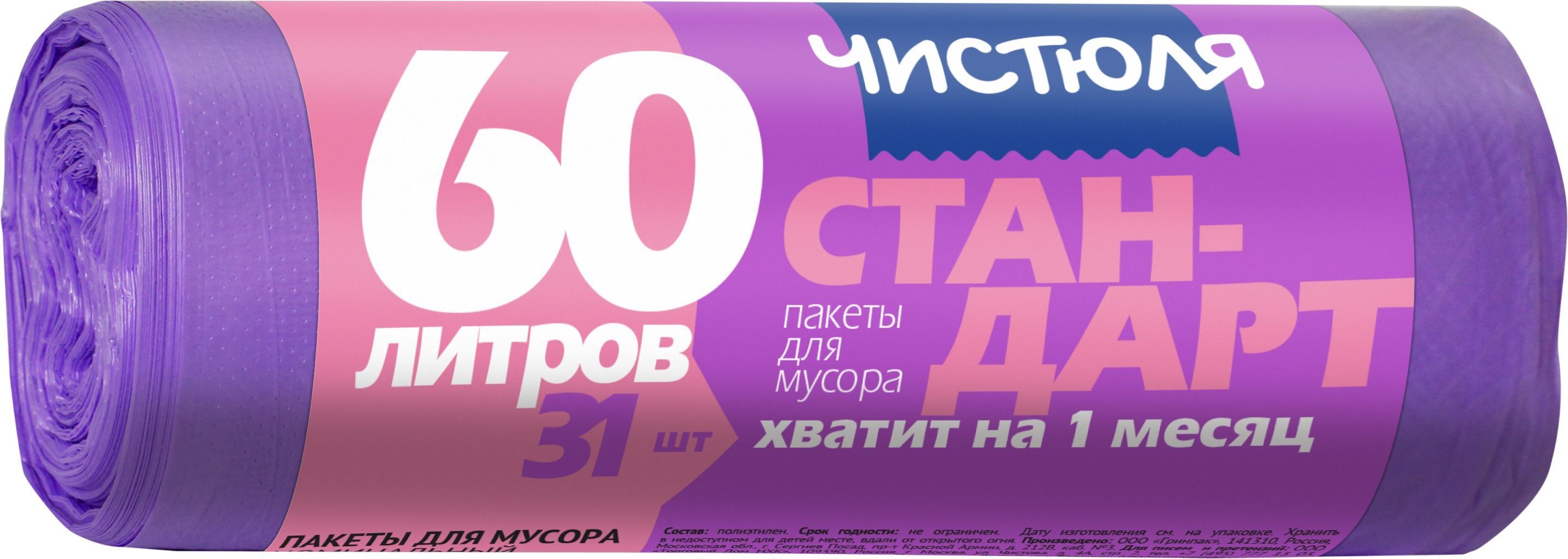 ЧИСТЮЛЯ пакеты для мусора СТАНДАРТ 60л 31шт