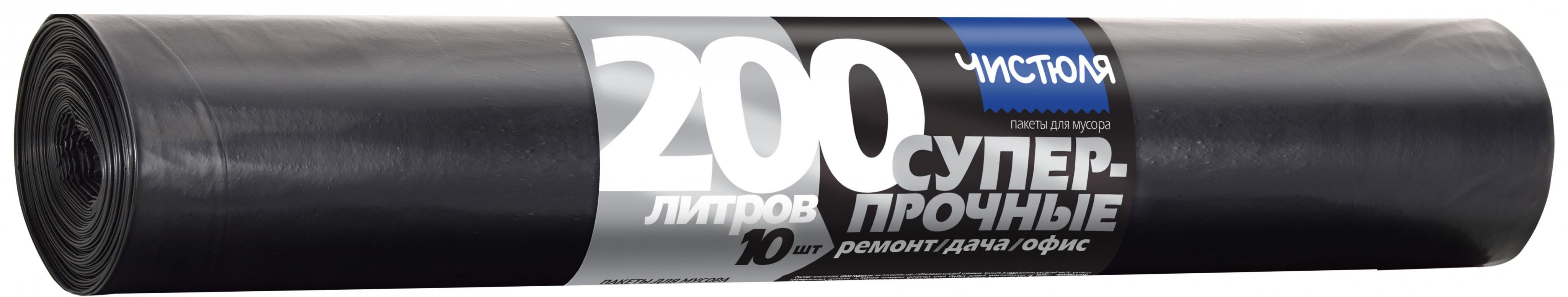 ЧИСТЮЛЯ пакеты для мусора СУПЕРПРОЧНЫЕ ремонт&дача&офис 200л 10шт