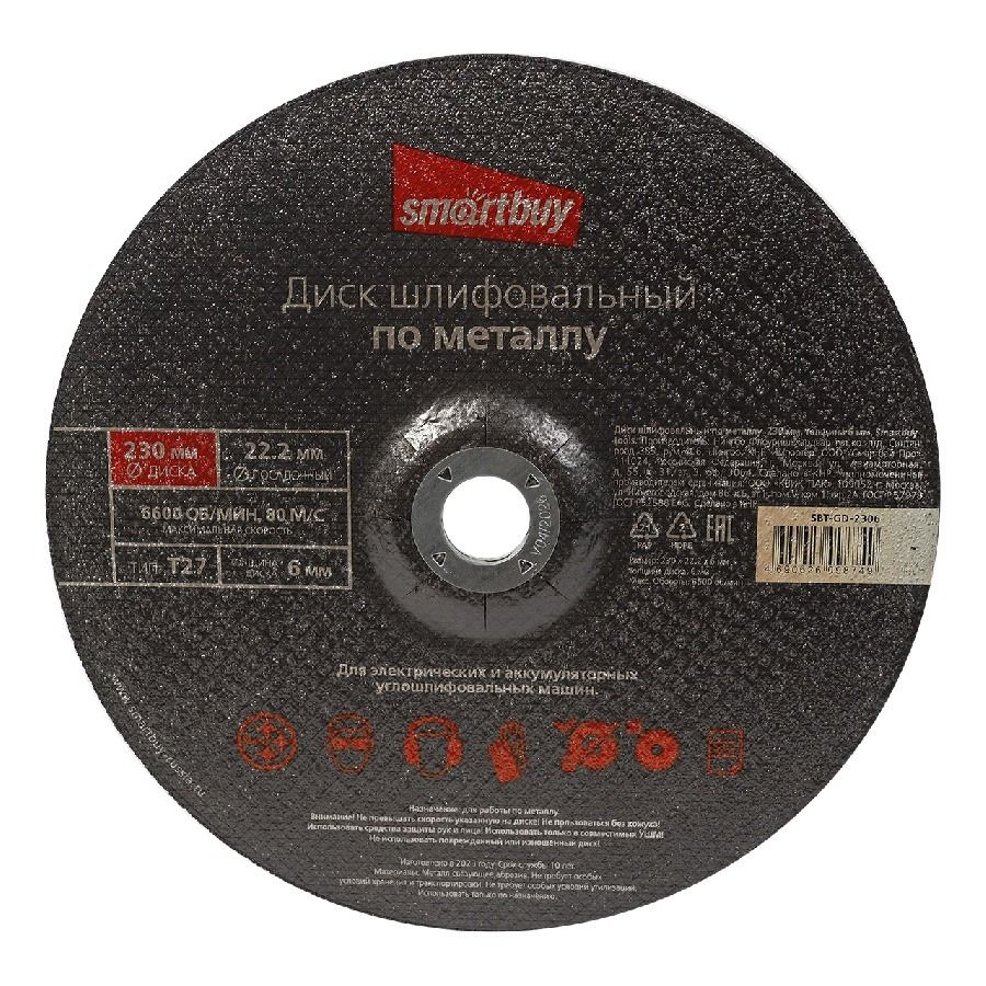 Диск шлифовальный по металлу 230 мм, толщина 6 мм, Smartbuy tools