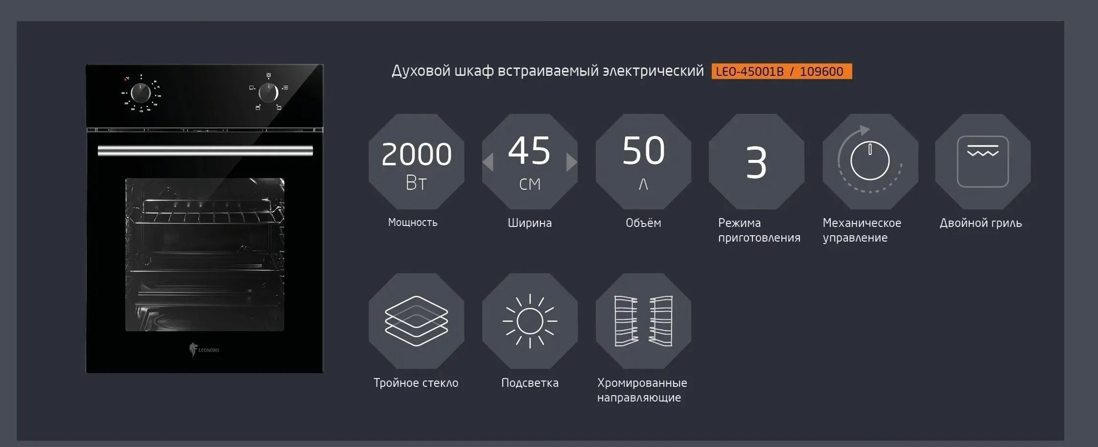 Духовой шкаф встраиваемый электрический Leonord LEO-45001B