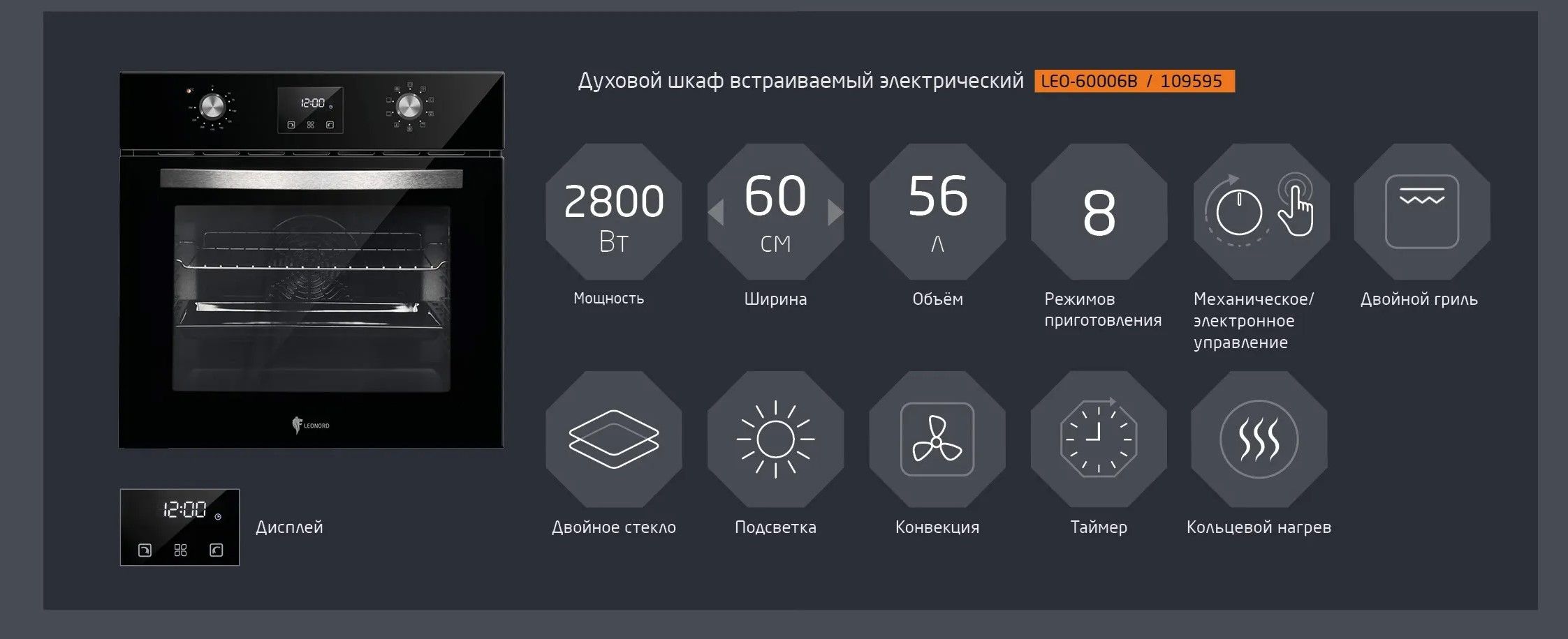 Духовой шкаф встраиваемый электрический Leonord LEO-60006B