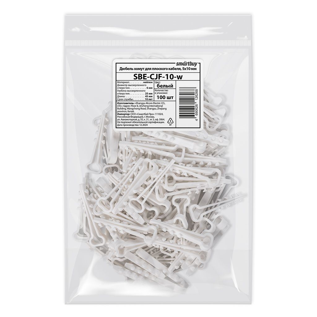 Дюбель-хомут для плоского кабеля 5x10 мм нейлон белый (100шт) (SBE-CJF-10-w)