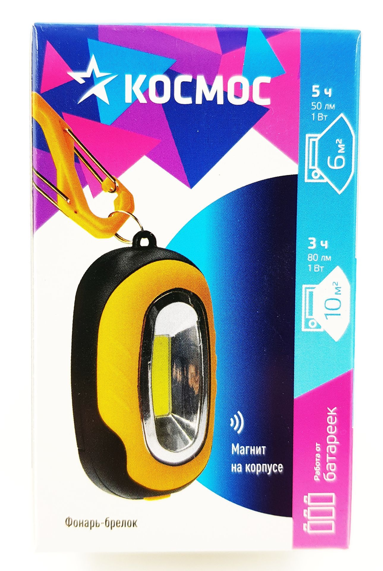 Фонарь брелок КОСМОС (KOC202B) походный кемпинг /1ВтCOBLED/3xAAA/ABS-пласт/магнит на корпусе/карабин