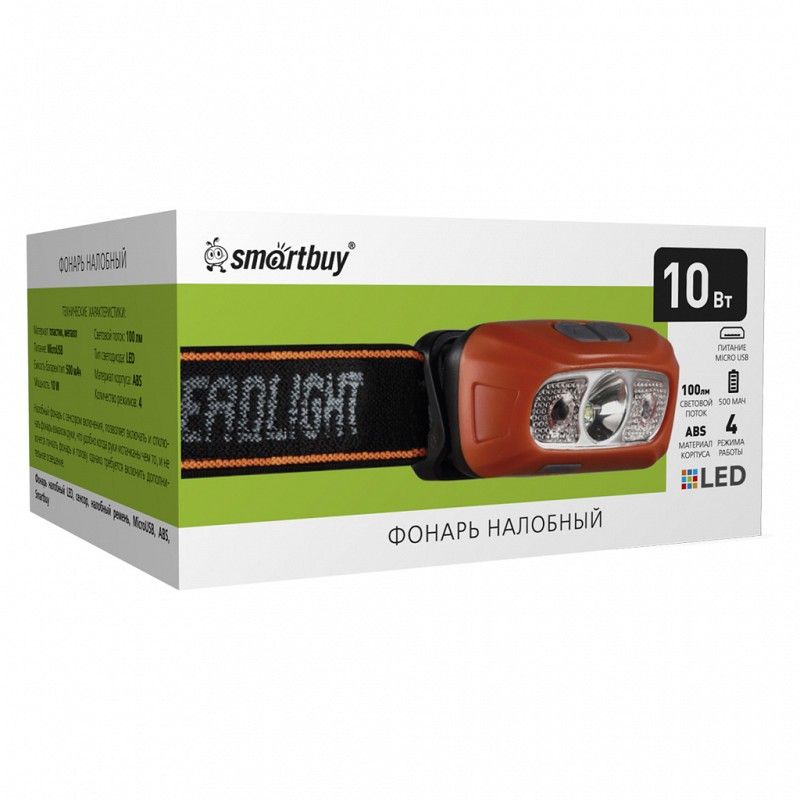 Фонарь налобный COB+LED, сенсор, налобный ремень, MicroUSB, ABS, Smartbuy