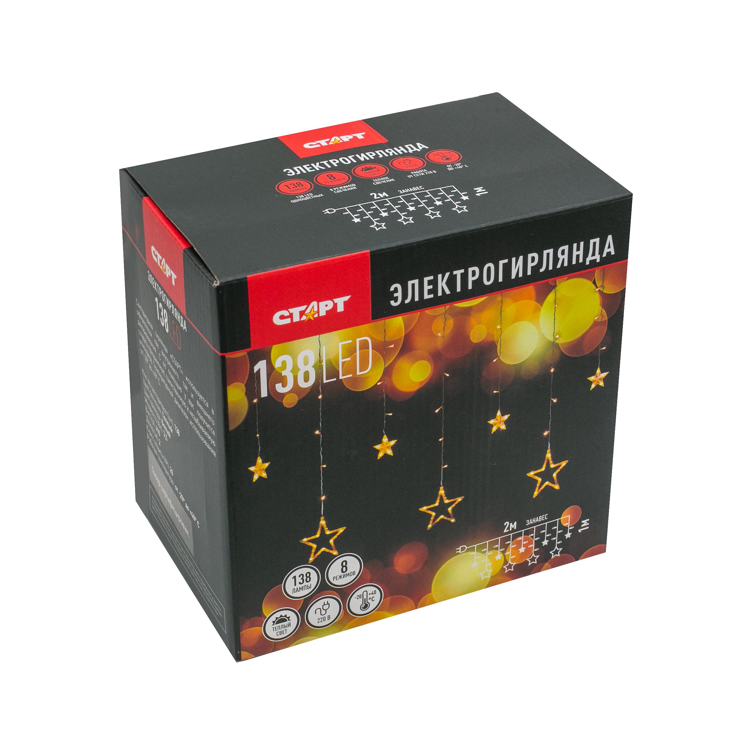 Гирлянда СТАРТ НГ 138LED 220V 8 реж 2х1м звезды --20