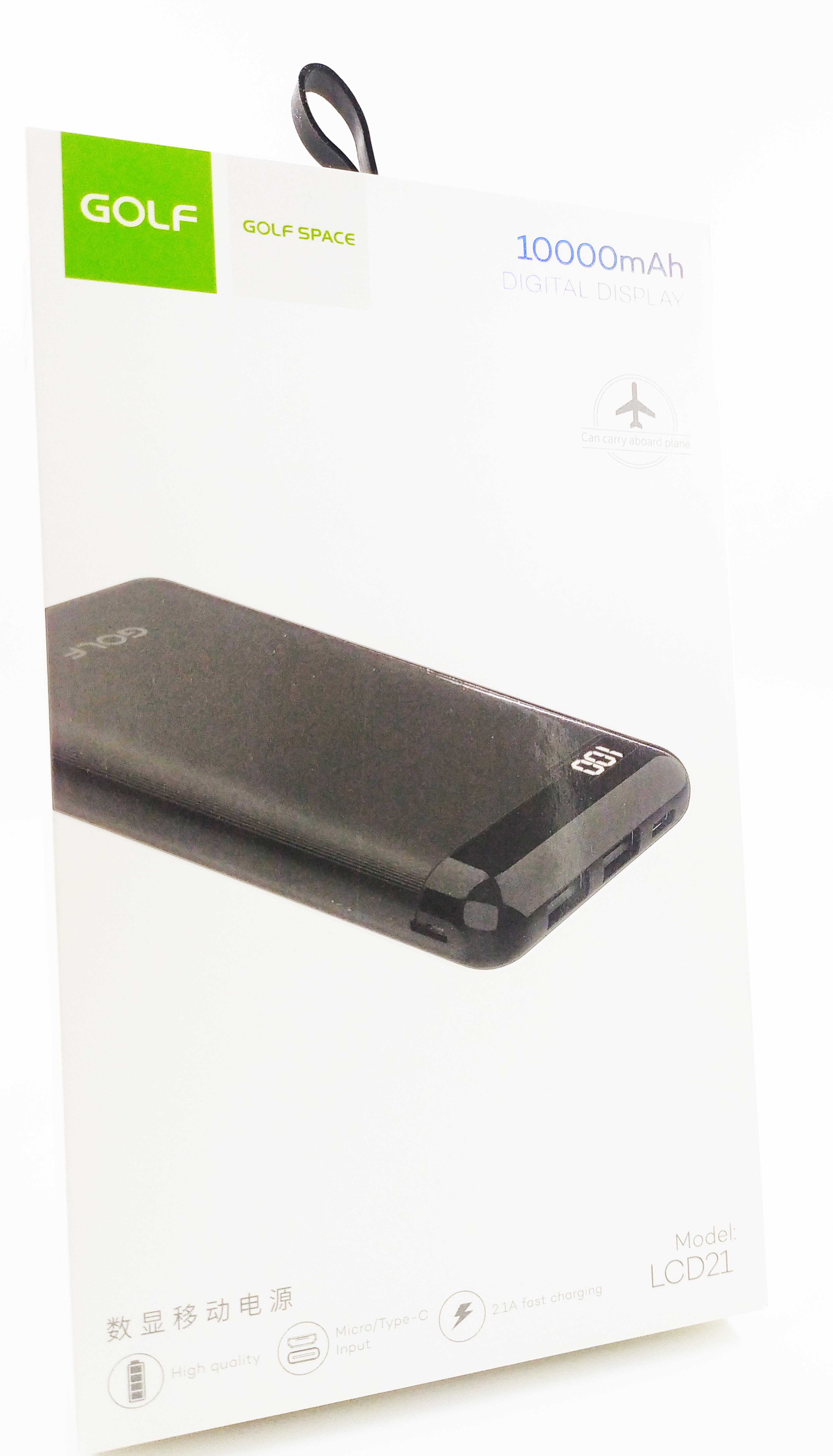 GOLF LCD21/ Powerbank 10000 mah/LED дисплей/In Micro usb,Type-C/Out Type-C,USB1А,2.1A/Black