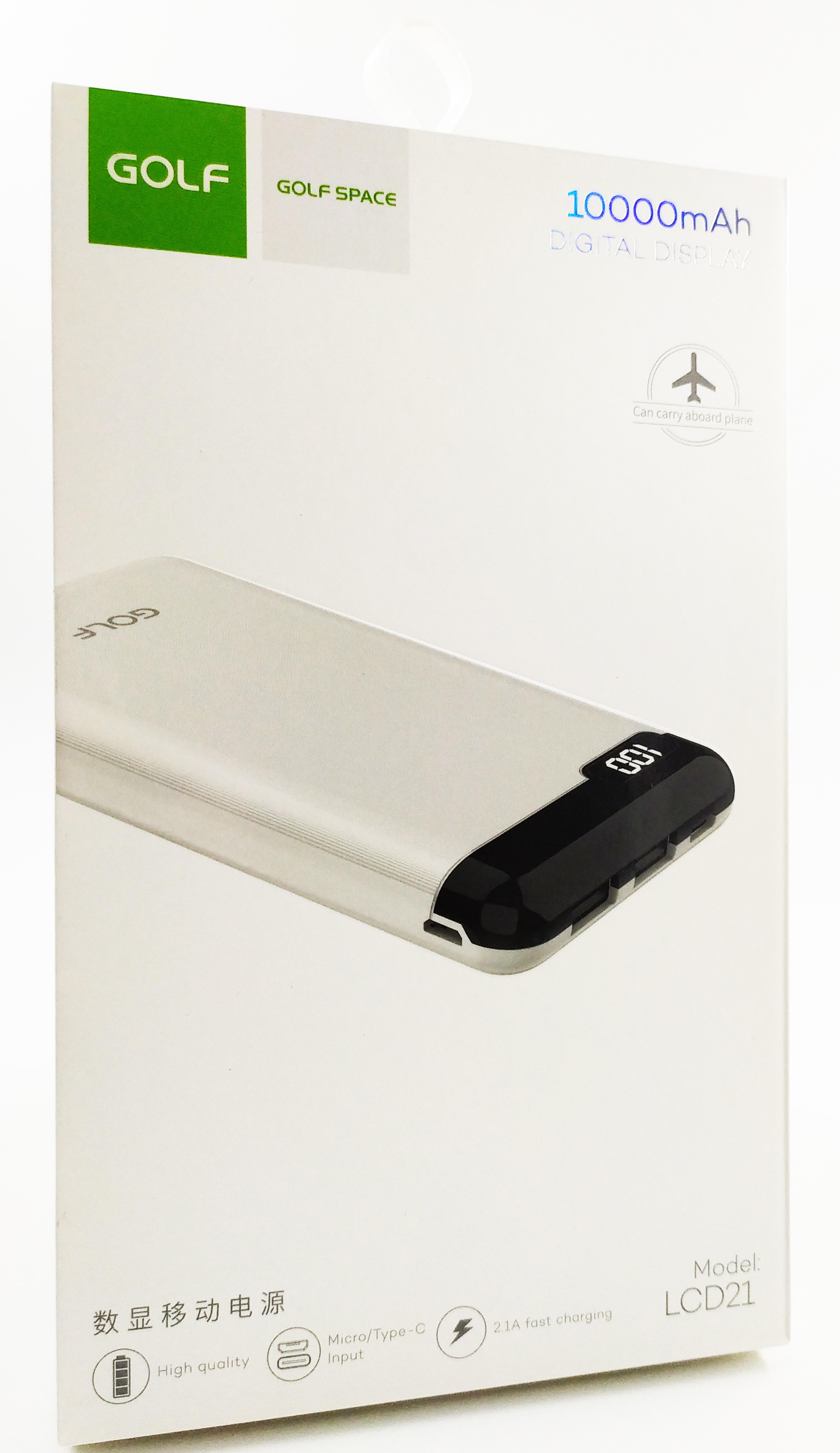 GOLF LCD21/ Powerbank 10000 mah/LED дисплей/In Micro usb,Type-C/Out Type-C,USB1А,2.1A/White