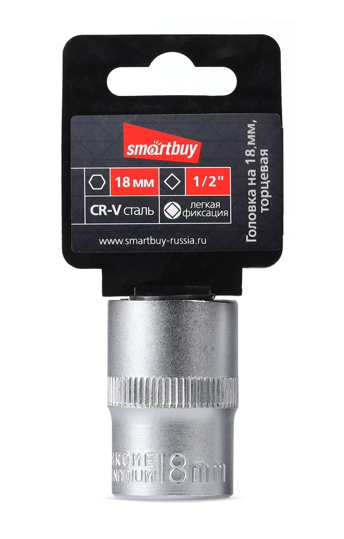 Головка на 18 мм, торцевая, шестигранная, под квадрат 1/2", CR-V, Smartbuy tools