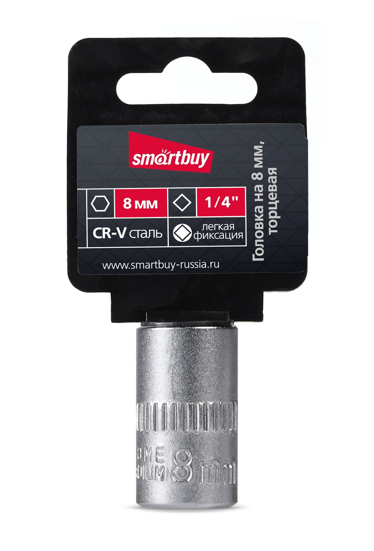 Головка на 8 мм, торцевая, шестигранная, под квадрат 1/4", CR-V, Smartbuy tools