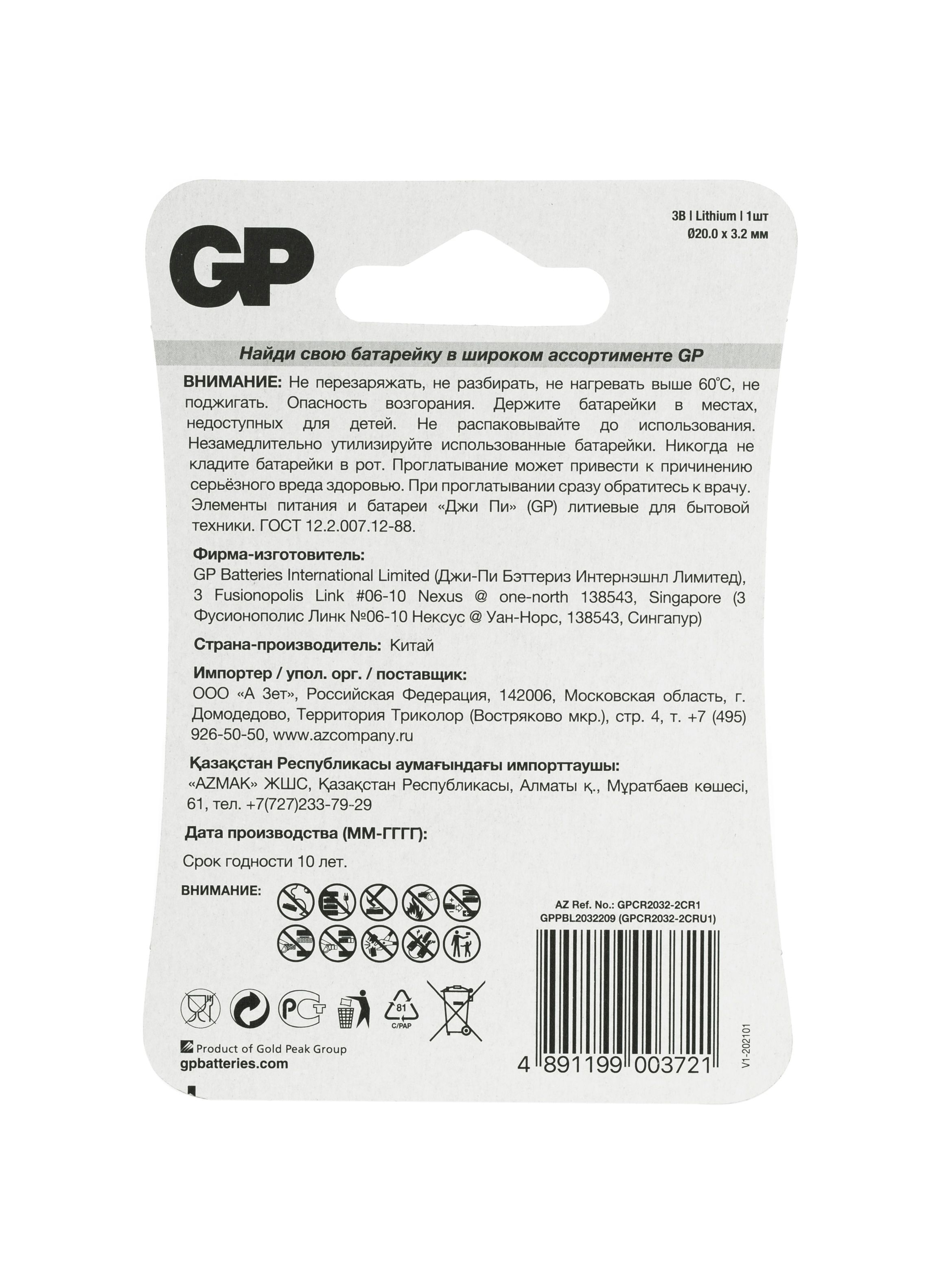 GP Элемент питания CR2032-2CRU1