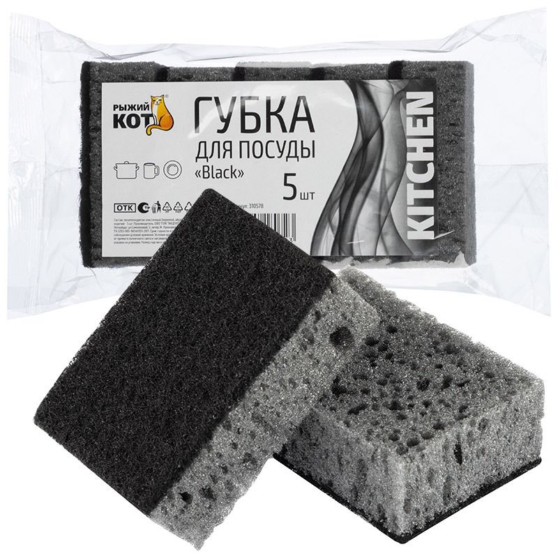 Губка д/посуды "Black" (5шт) (98*67*35мм)