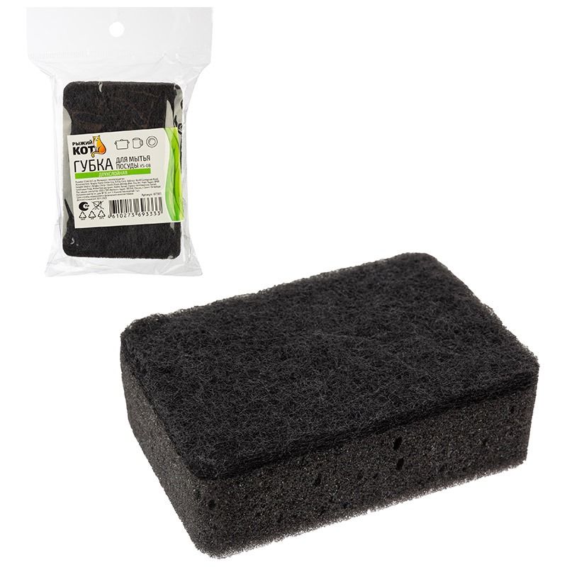 Губка для мытья посуды двухслойная прямоугольная KS-08 (черный)