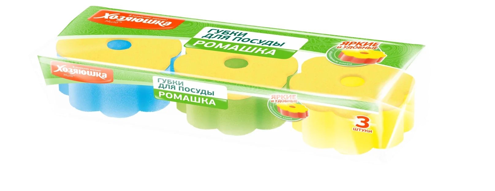 Губка для посуды "ХОЗЯЮШКА Мила" РОМАШКА, 3 шт.