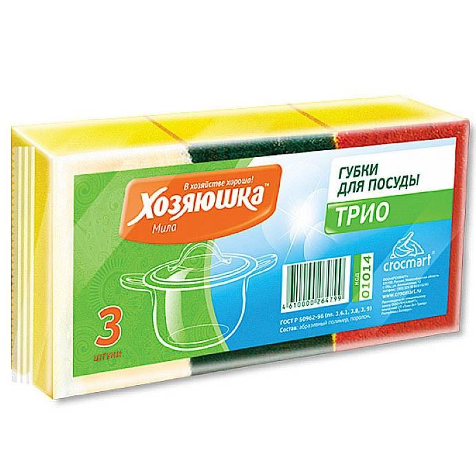 Губка для посуды "ХОЗЯЮШКА Мила" ТРИО 3 шт.