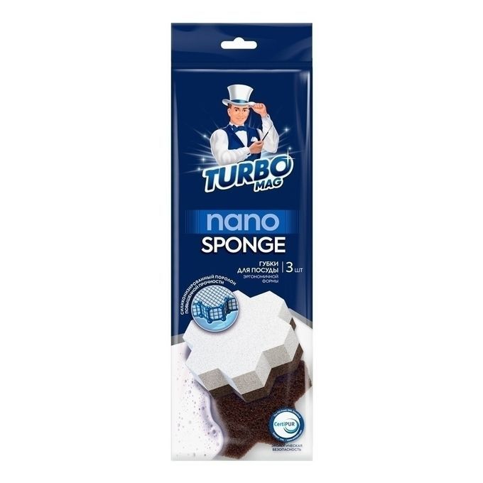 Губка для посуды "TURBOMAG" NANO SPONGE, 3 шт.