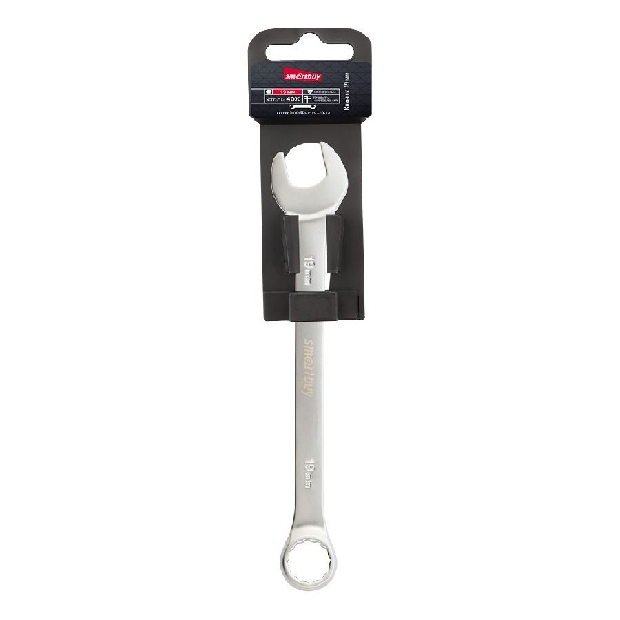 Ключ комбинированный на 19 мм, хромированный, 40X, Smartbuy tools