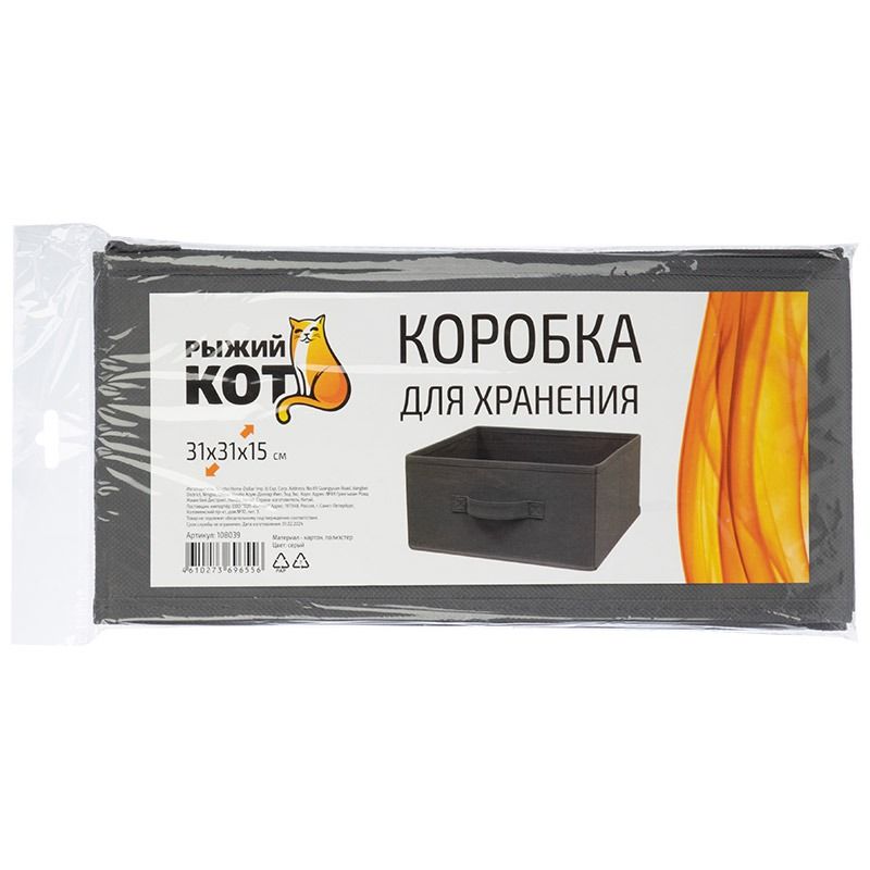 Коробка для хранения, 31х31х15 см, 1 шт, цвет - серый