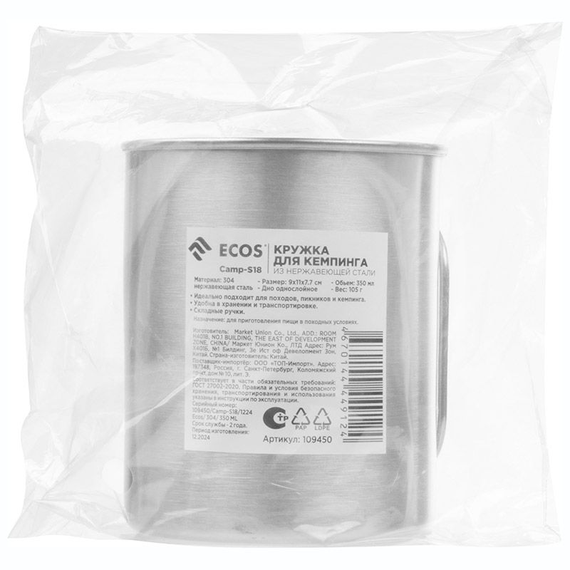 Кружка для кемпинга Camp-S18 из нержавеющей стали, объём: 350мл