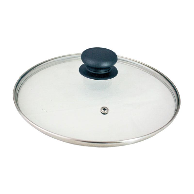 Крышка с ручкой стеклянная 24см., с метал/обод, паровыпуск, низ.