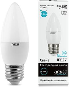 Лампа Gauss LED Elementary Candle 8W E27 4100K 1/10/100
