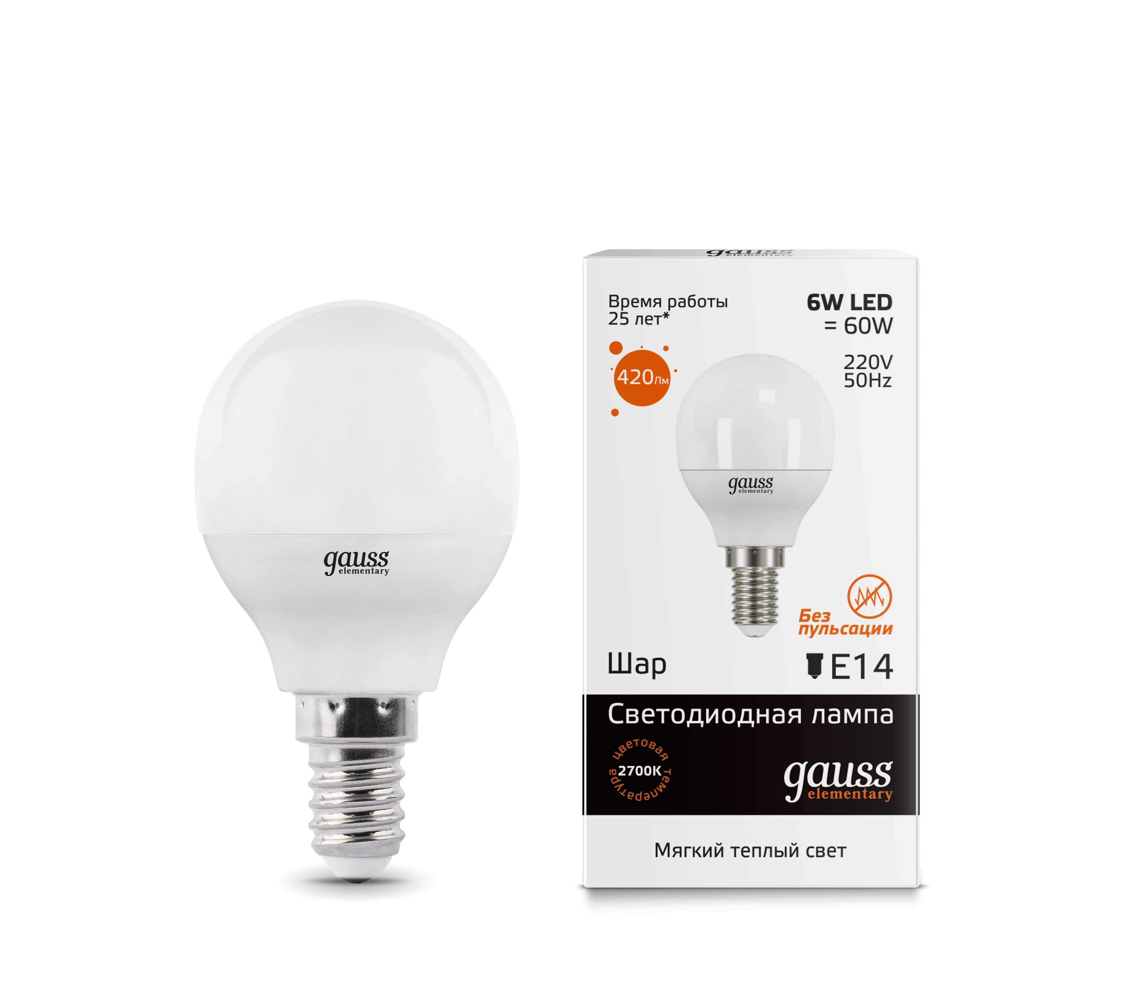 Лампа Gauss LED Elementary Globe 6W E14 3000K 1/10/50