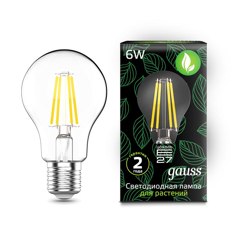 Лампа Gauss LED Fito Filament A60 6W E27 1/50