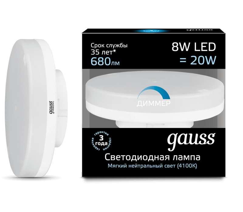Лампа Gauss LED GX53 8W 4100K диммируемая1/10/100
