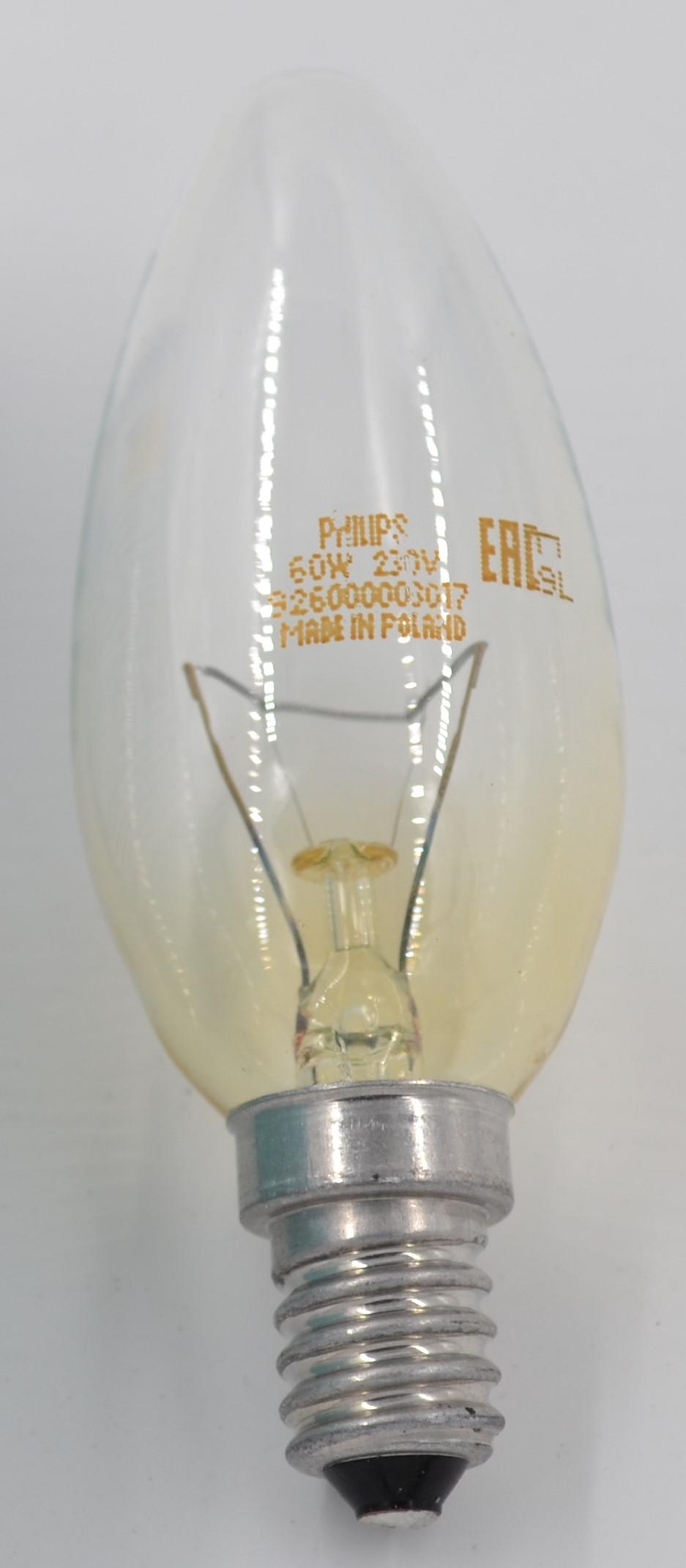 Лампа накаливания Philips В35 60W E14 230V свеча СL (10,100)