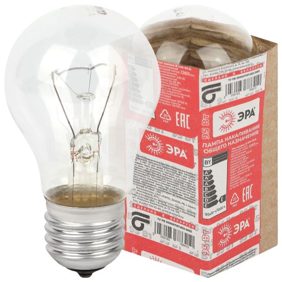 Лампочка ЭРА A50 95Вт Е27 / E27 230В груша прозрачная в гофре