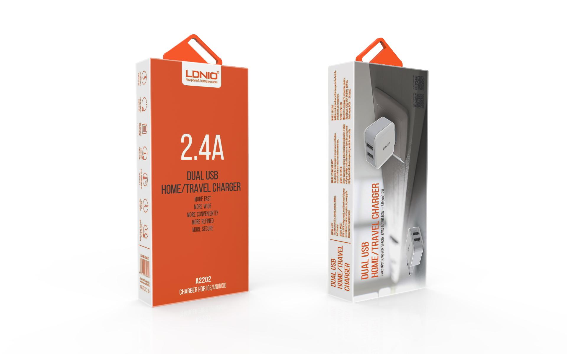 LDNIO A2202/ Сетевое ЗУ/ 2 USB Auto-ID/ Выход:12W/ White