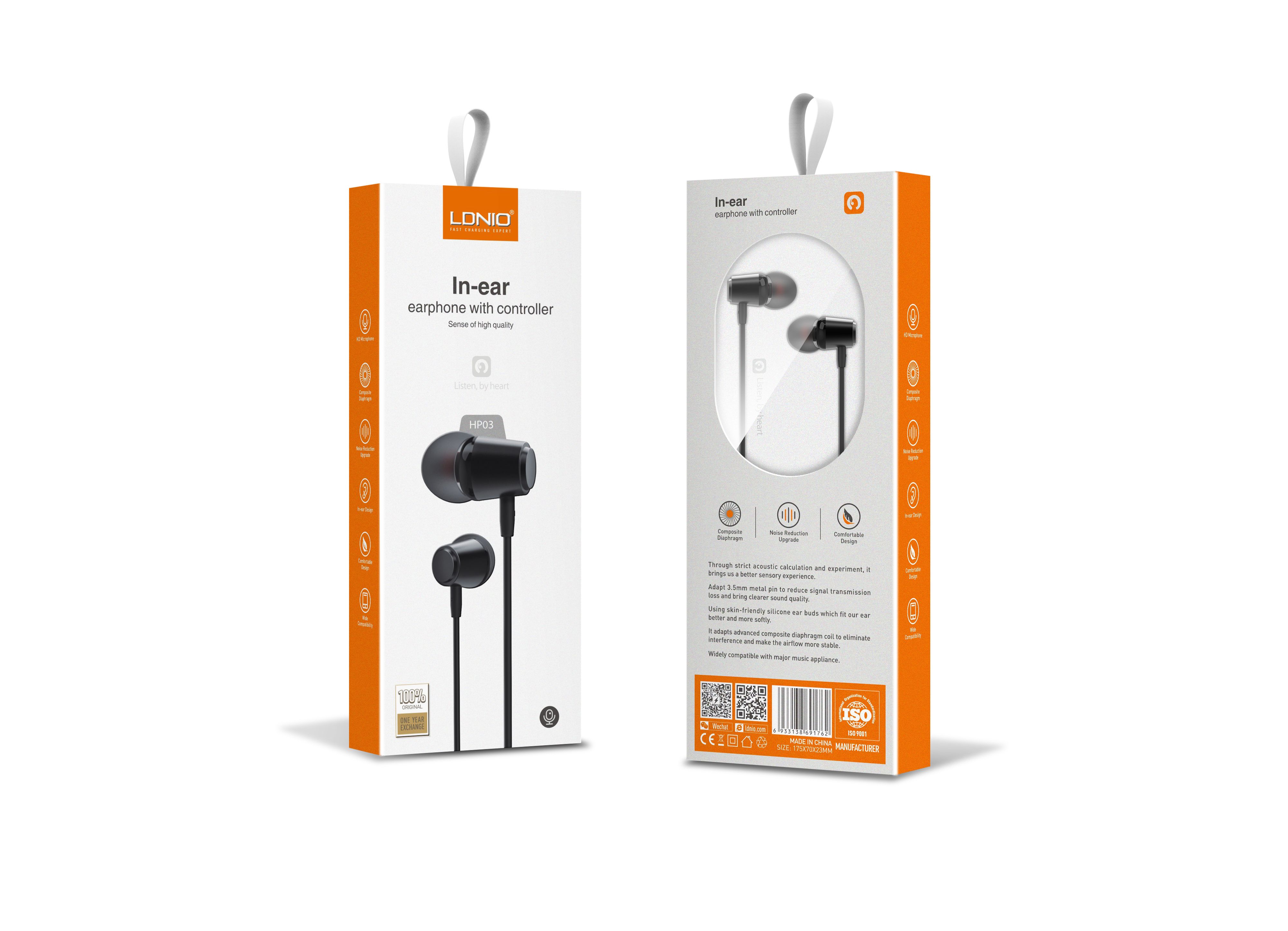 LDNIO HP03/ Наушники + микрофон/ Кнопка управления/ 1м/ 3.5 mm jack/ Black