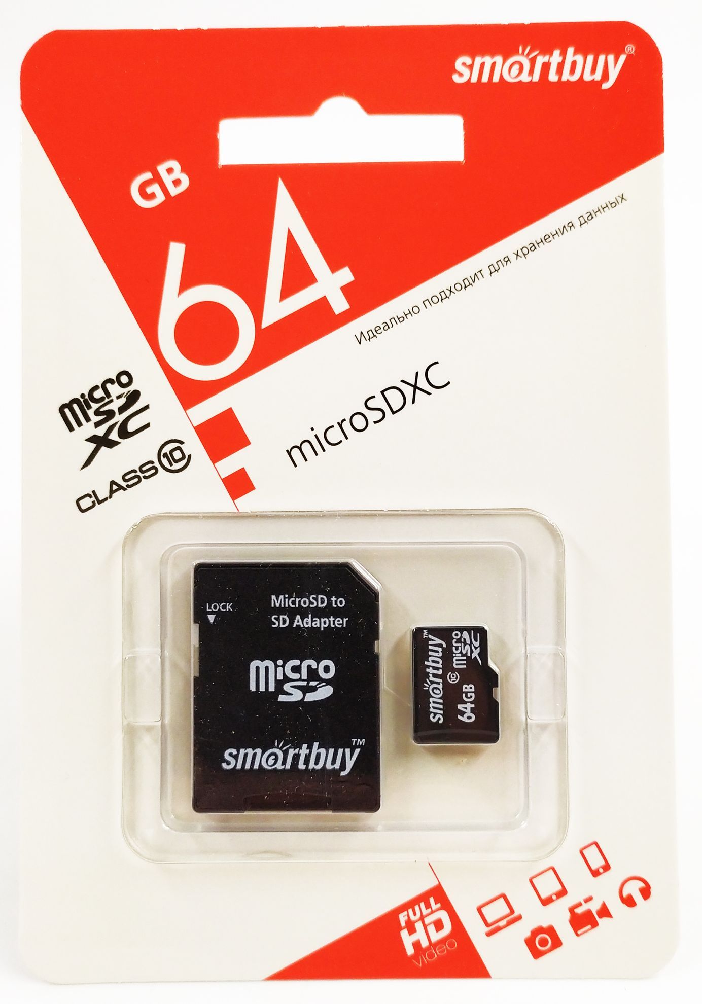 micro SDXC карта памяти Smartbuy 64GB Class 10 (с адаптером) LE