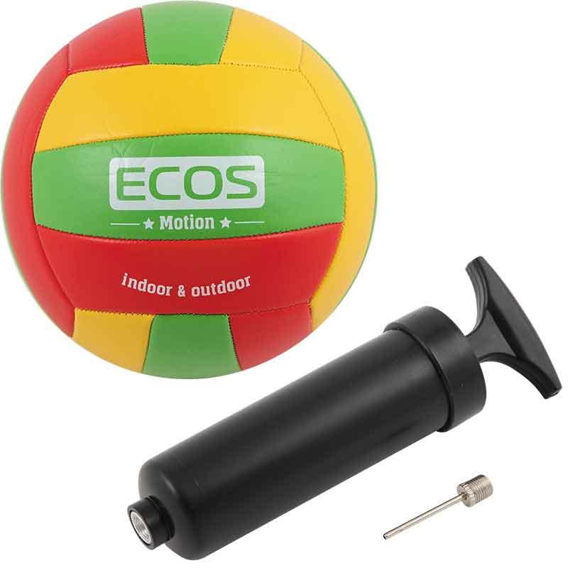 Мяч волейбольный ECOS MOTION и насос VB105P (№5, 3-цвет., машин.сшивка, ПВХ)