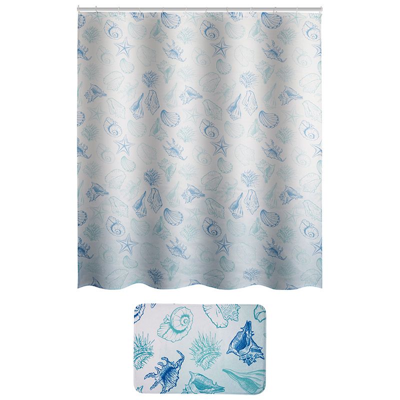 Набор для ванной комнаты "Ракушки": коврик + занавеска