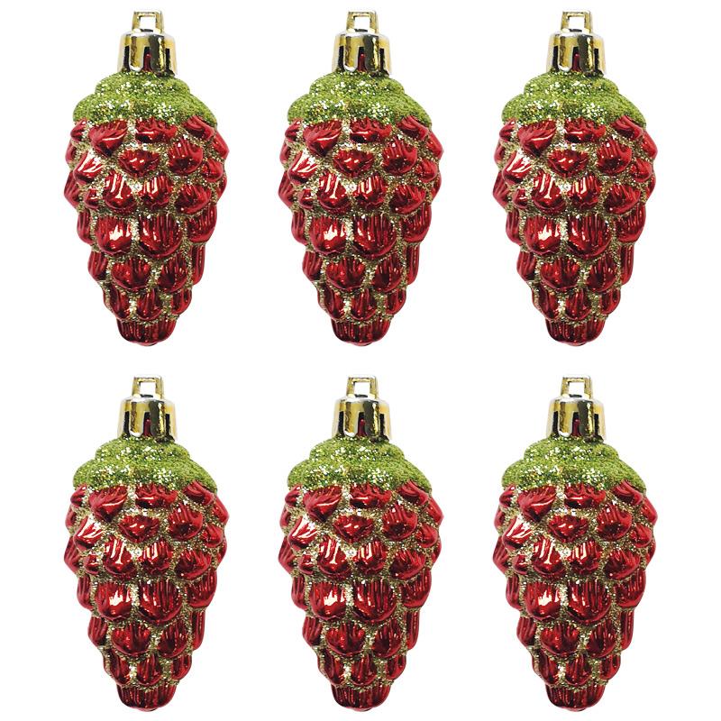 Набор елочных украшений "Шишки" (6шт) цвет красный