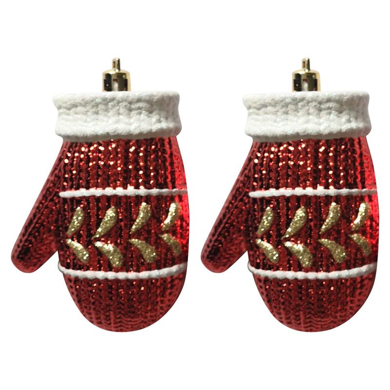 Набор елочных украшений "Варежки" (2шт) цвет красный