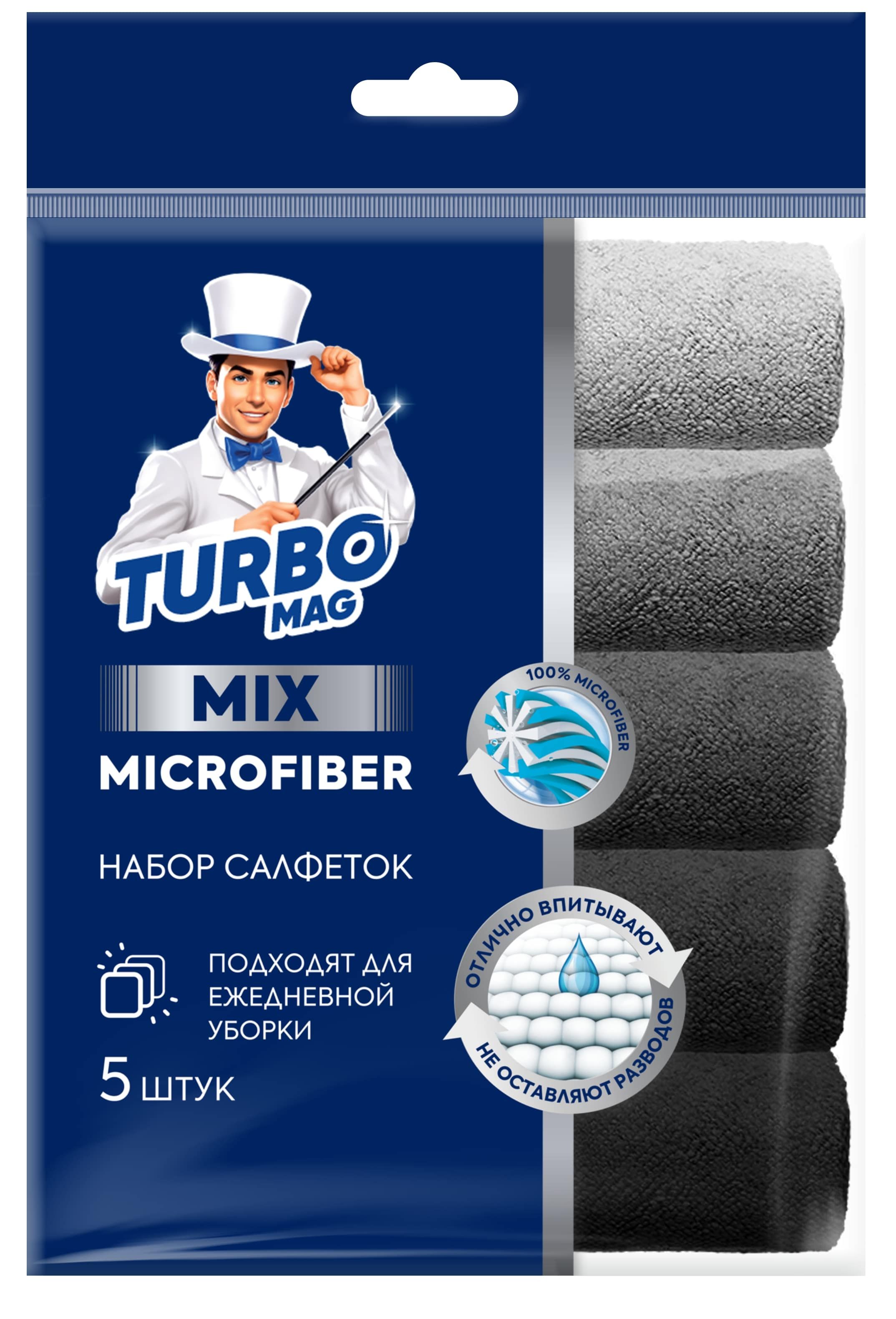 Набор салфеток универсальных TURBOMAG MIX микрофибра 30*30см, 5 шт.