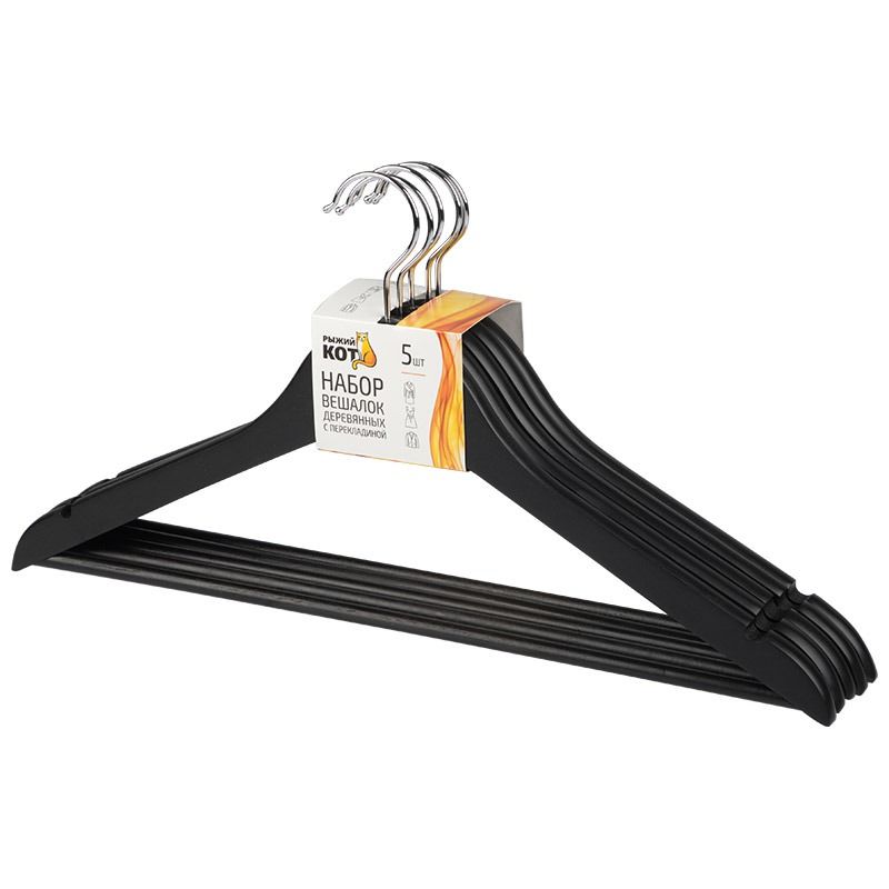 Набор вешалок деревянных с перекладиной, 5 шт, цвет черный