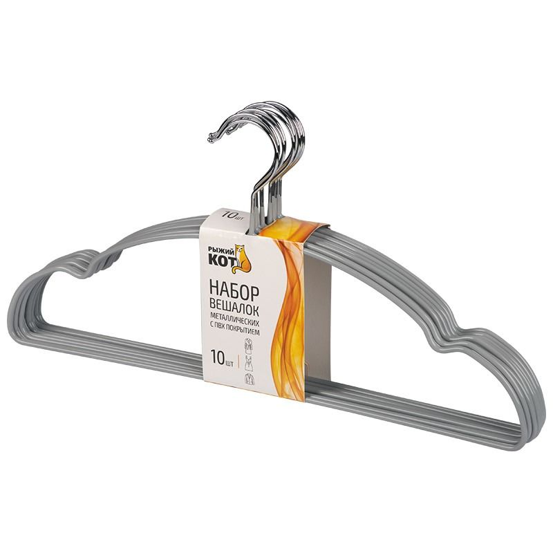 Набор вешалок металлических с ПВХ покрытием, 10 шт, цвет серый
